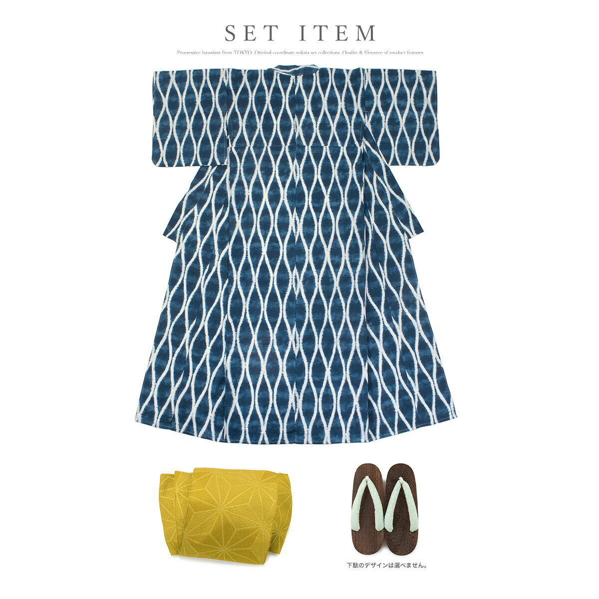 estimated delivery.■浴衣(適応身長:身丈の5cm前後)(素材)表地:綿100% 裏地:なし身丈袖丈裄丈Sサイズ約155cm約47cm約65cmフリーサイズ約165cm約49cm約68cm■帯(素材)表地:ポリエステル100% 裏地:なし幅長さサイズ約17cm約356cm■下駄(適応サイズ:23.0〜24.5cm)(素材)鼻緒:ポリエステル 台:桐幅長さ高さサイズ約8cm約24.2cm約3.5cmこちらの商品は、浴衣・帯・下駄の3点セットです。